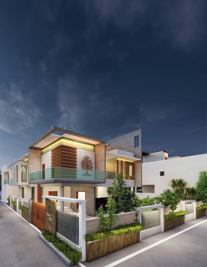 Artistic Architecture, Stylish Elevations, Anti-termite treatment, Glass Shower enclosures for Master Bedroom, FOSROC waterproof for toilets, terrace & balconies, Name board with letter box, Head room - 9 inch outer wall with 5 inch thick roof, Exteriors - 1 white cement coat & 2 exterior emulsion paint Apex coats, Joinery & Grills - 1 primer coat with 2 enamel paint coats, Weathering coarse with Traditional lime sand concrete & Roca tiles, Basement from road level- 4'5" height, Roof height - 10 ft, Vaasthu plan for complete structure, Lintel & Sunshade, Cupboards with masonry, Concealed 3 phase electricity supply & Modular switches, Finolex CPVC, UPVC, PVC pipes for plumbing, Teak Double door with safety chain, Windows & Ventilators, Staircase with elegant granite flooring, Car Parking with Paver blocks or Eurocon Tiles and Rain water harvesting